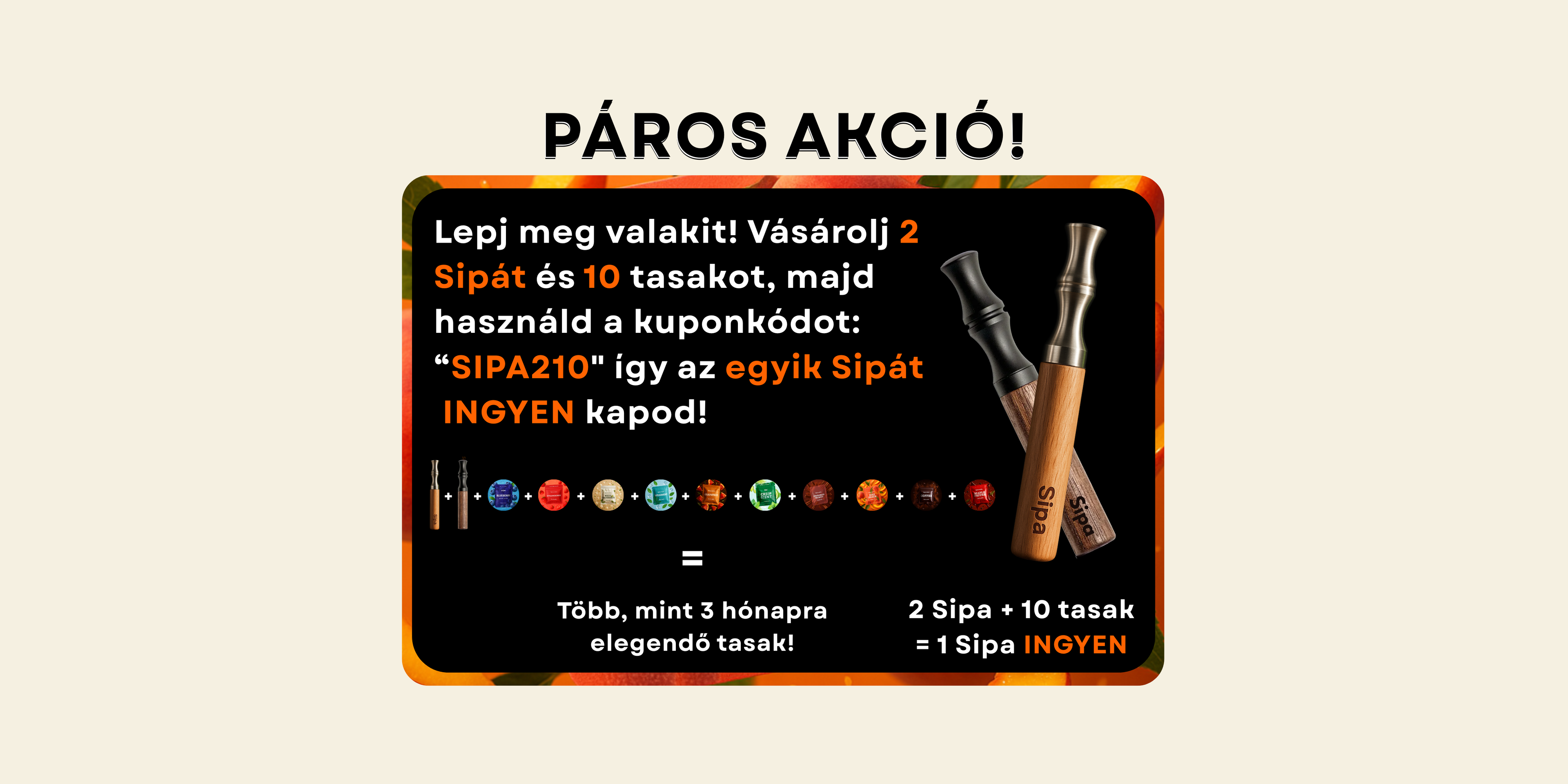 A Sipát csak 1x kell beszerezni és életed végéig fogod tudni használni. Az ízesített rudakból pedig ajánlott 4 tasakot venni, amit használni tudsz akár több, mint egy hónapig, így a költséged havi szinten eltörpül más káros szokások mellett.